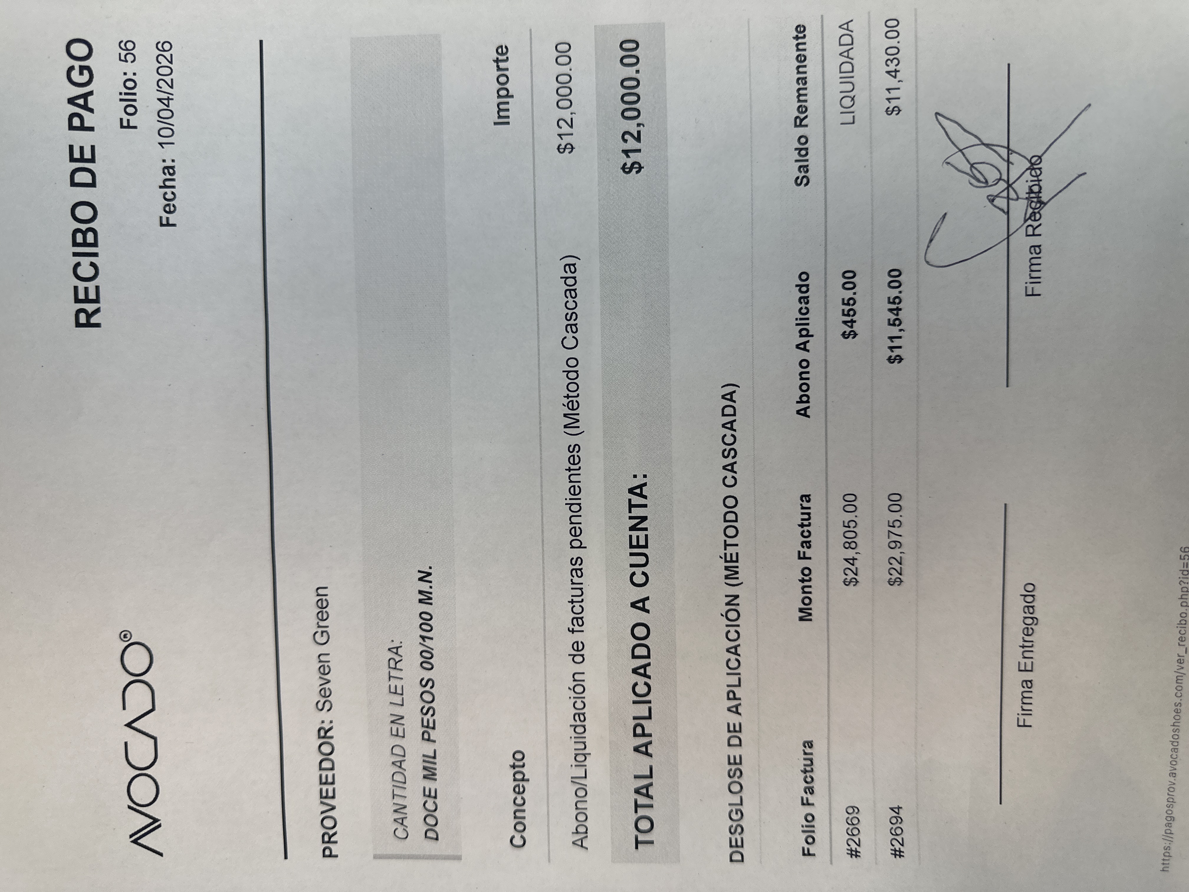10/04/2026 | Seven Green | $12,000.00 | $0.00 | $12,000.00 | β Cargada | π Ver Firma |